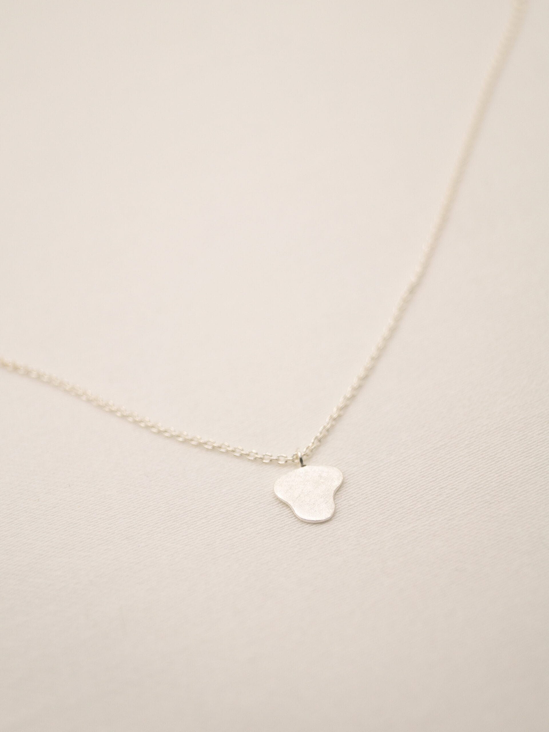 Zilveren ketting met hanger in gematteerde, organische vorm. De ketting is 42cm lang en heeft een schakeldikte van 1.1mm (alternatieve ketting is mogelijk).